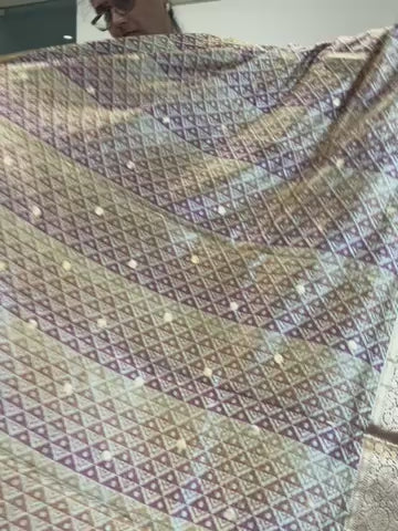 These are pure crepe silk Banarasi sarees with geometrical digital prints and zari motif all over the saree and contrast blouse